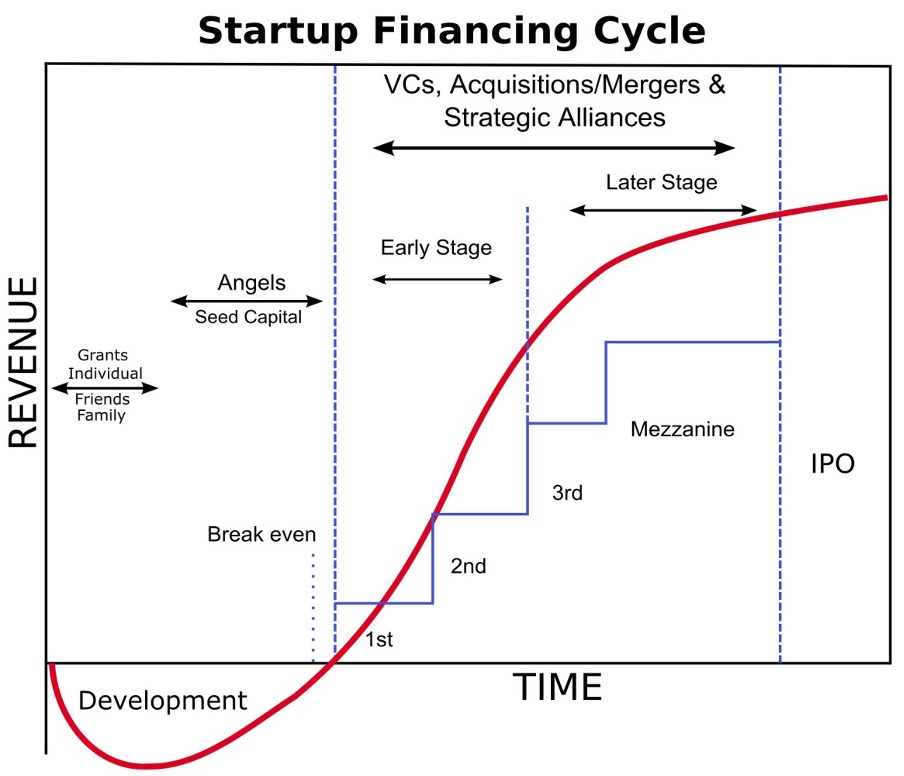 With reference to the startup financing cycle (figure below), seed capital can help new ventures with access to finance early on to be able to meet the initial startup costs, typically until the startup starts selling a product or service and eventually attracts more investors.